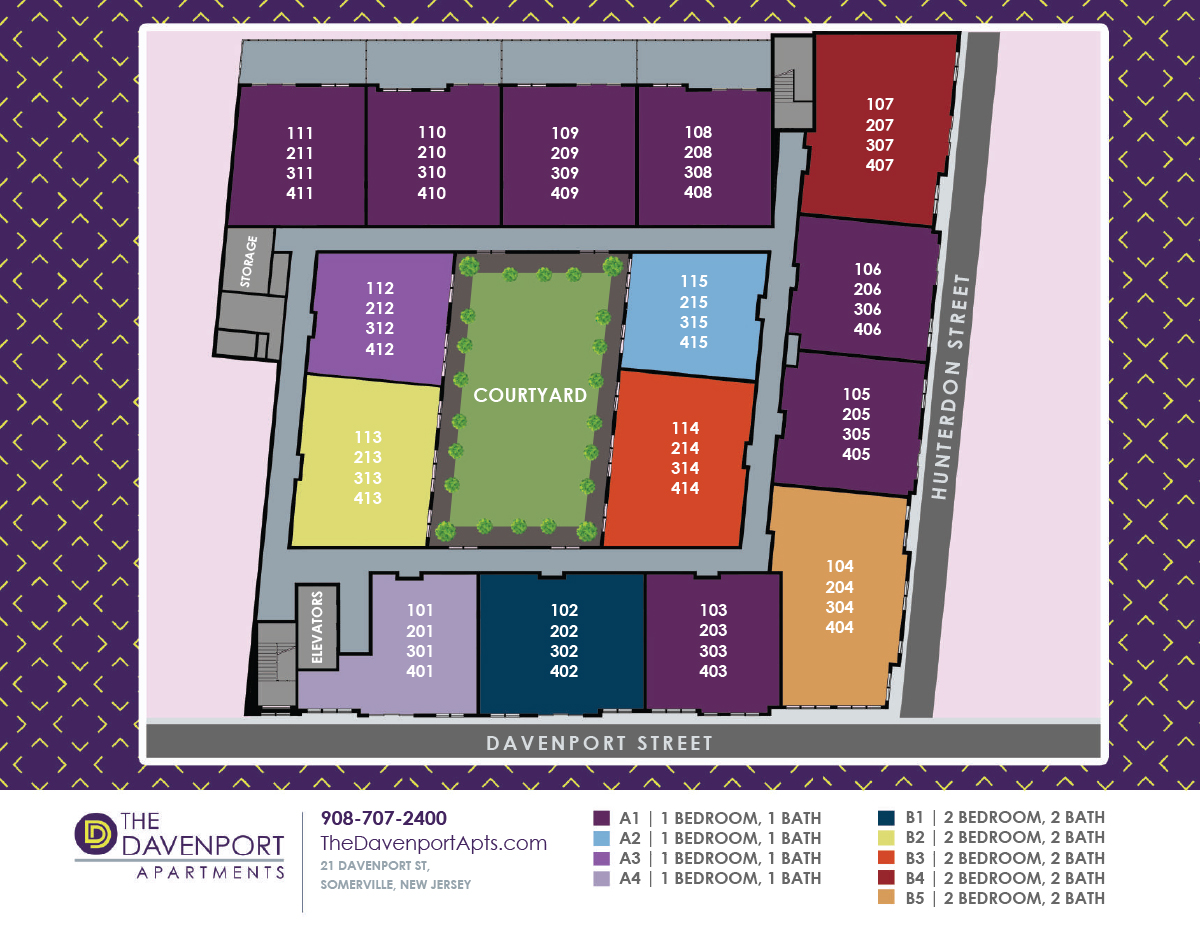View The Davenport Apartment site maps below. To download our site map PDF, click here.
