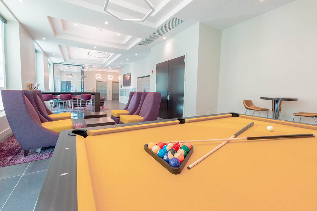 The amenities at The Davenport is thoughtfully designed to give residents the best of luxury living and leisure. Our amenities include modern courtyard, indoor dog spa, and an exquisite clubhouse with billiards, game, and media rooms. Our 24-hour fitness club will replace your existing gym membership with state-of-the-art equipment including bikes, interactive treadmills, rowers, and ellipticals.